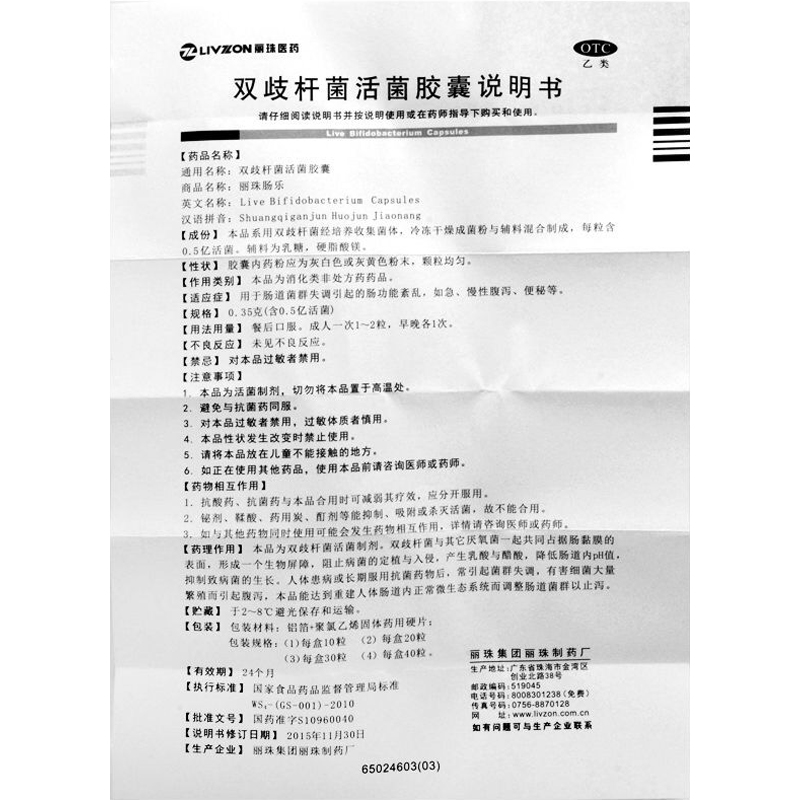 【品 牌】丽珠肠乐