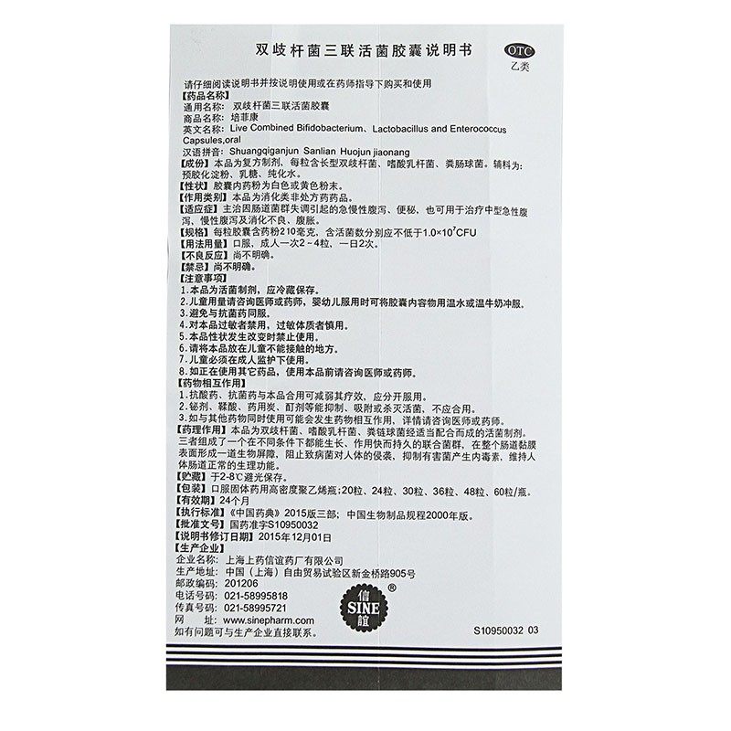 【商品名称】双歧杆菌三联活菌胶囊